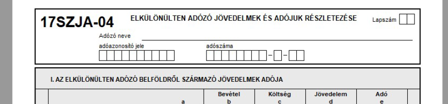 Itt azt kell feltüntetni, hogy az adott évben és az előző két évben: mennyi volt az ellenőrzött tőkepiaci ügyletből származó adó. Azoknál az éveknél, ahol veszteséged volt, a mezőt üresen kell hagyni. Példa: 2023: veszteség 2024: veszteség 2025: nyereség Ebben az esetben: a 2023–2024-hez tartozó sorok üresek maradnak, csak a nyereséges év adója kerül feltüntetésre.